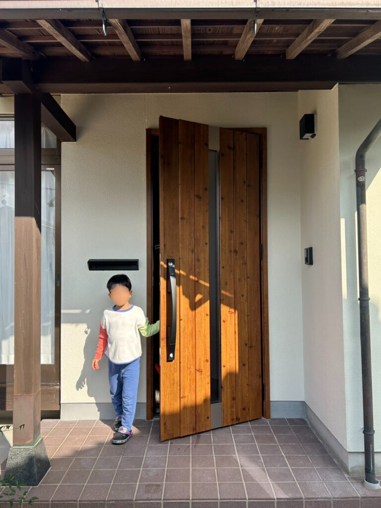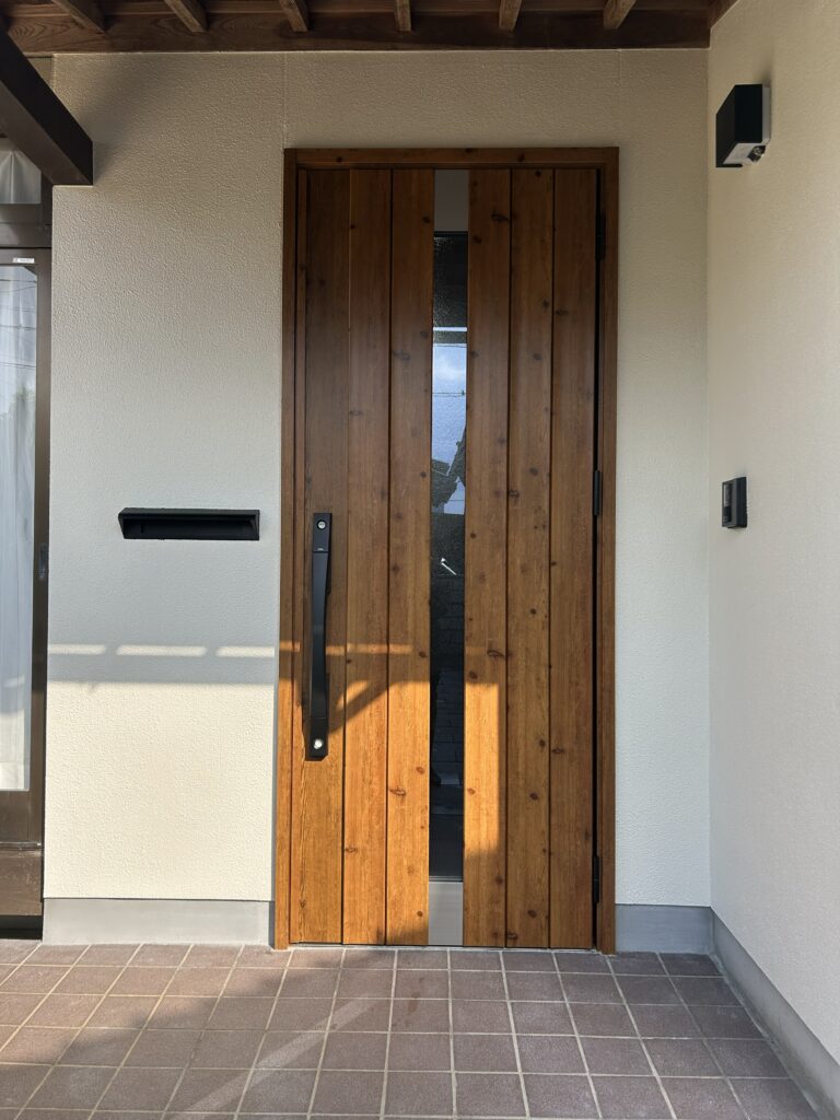 玄関正面は引き違い戸からドアへ変更し、住まいの印象がぐっと引き締まりました。