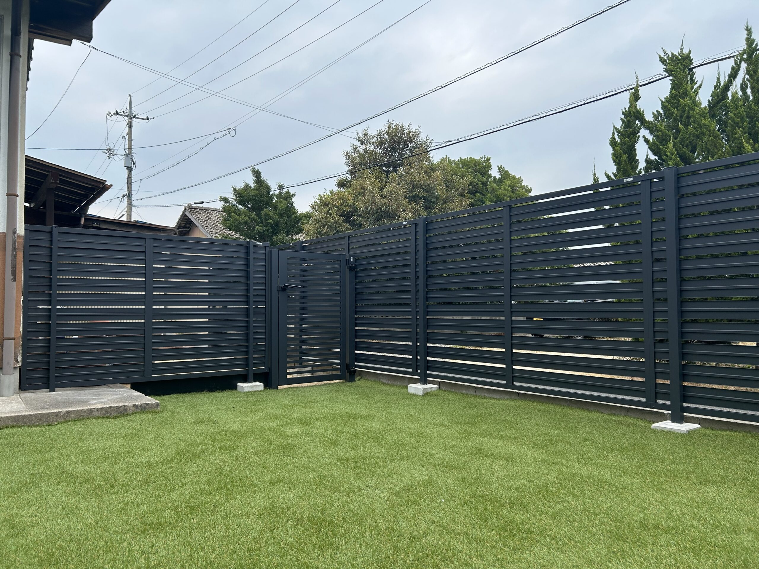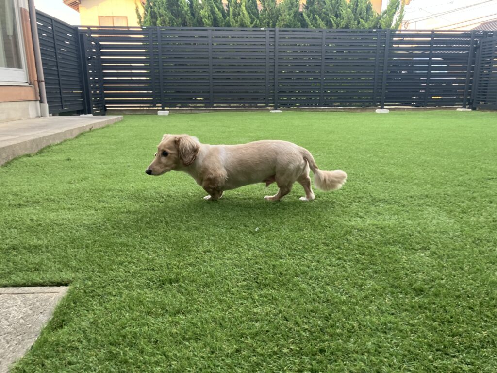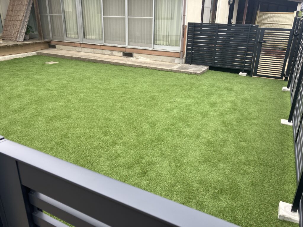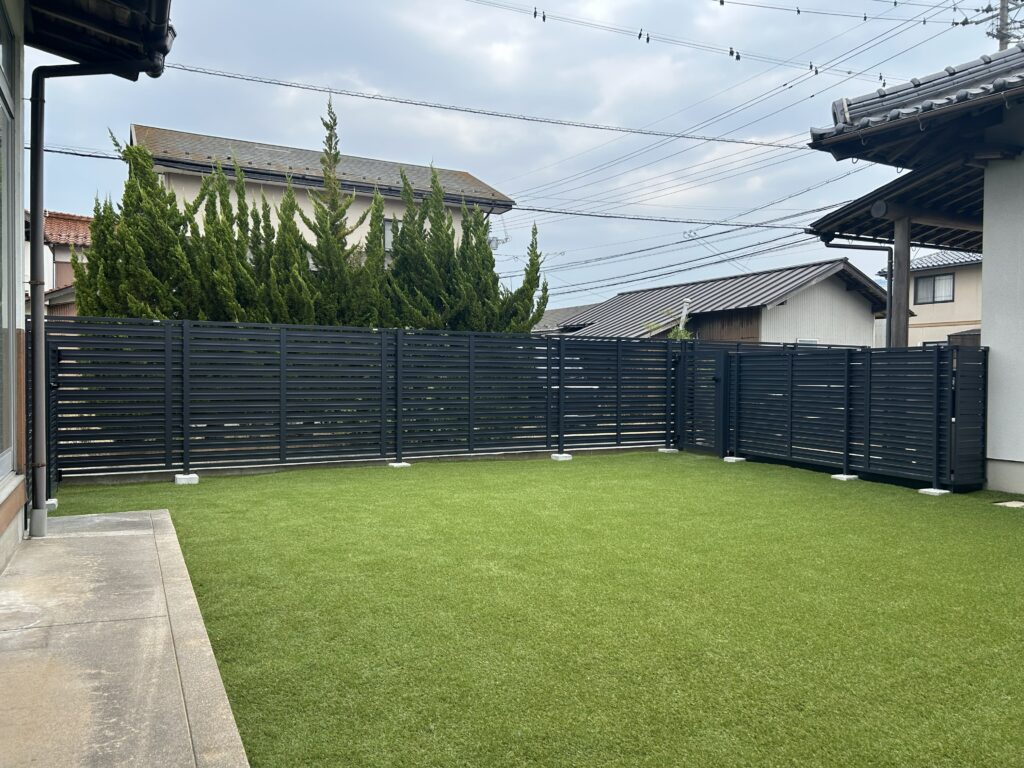 目隠しフェンスと人工芝で、人目を気にせず、家族がのびのび過ごせるお庭に。ワンちゃんも家の中だけでなく、外で過ごせる時間が出来ました。人工芝でいつもきれいなお庭を保てて、手間もストレスもなくなります