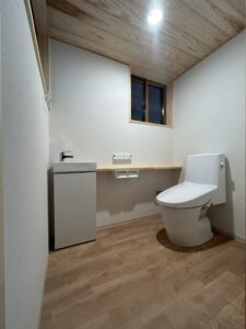 これまでトイレは屋外にあり、年を重ねるにつれて移動の負担も増え、来客時にも少し不便さを感じる場面が…。木のぬくもりが大好きで、明るく開放的な空間を求めるお客様のご要望を、ひとつひとつ丁寧にカタチに♡心がふっと和らぐトイレ空間が完成しました。