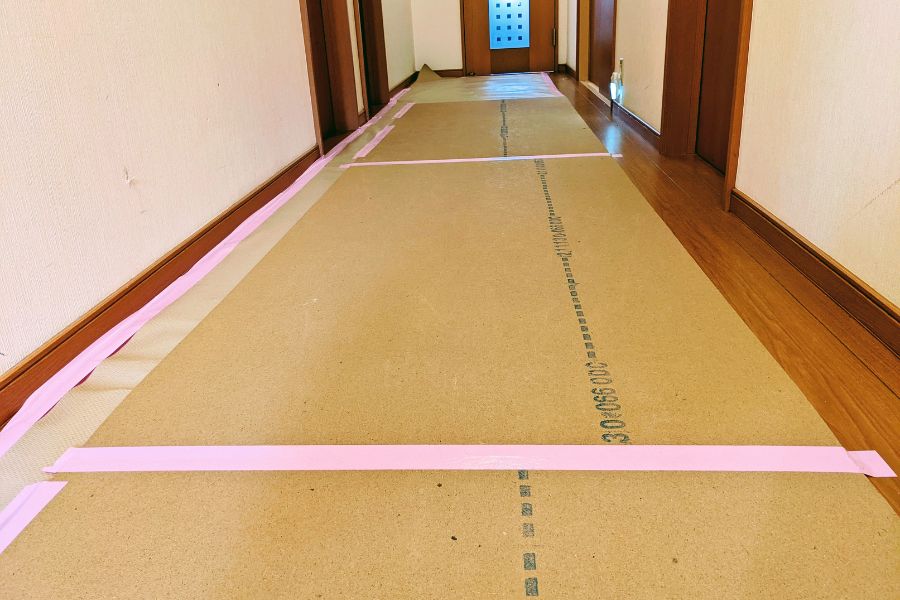 家具・床・通路を全面養生。水回り工事では仮設のご案内も事前にお伝えします。